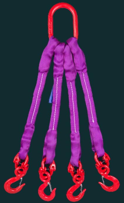 四腿吊带组合吊具是一种由四条吊带组成的吊装设备。它通过连接器将四条吊带连接在一起,形成一个整体的吊点系统。这种吊带索具适用于吊装需要四点支撑的货物,可以提供稳定的吊装支持。四腿吊带组合吊具具有承载能力强、结构稳定、操作简便等特点。