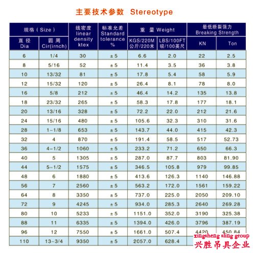芳纶纤维绳索技术参数